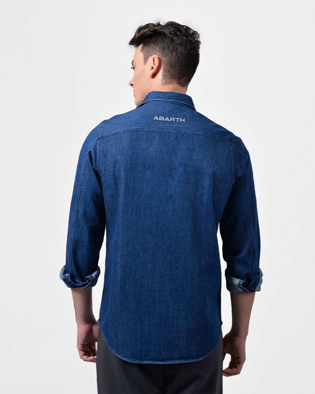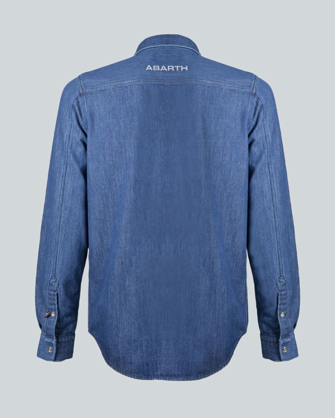 Camicia in jeans in 100%cotone. Apertura camicia e maniche con bottoni a pressione personalizzati con lo scorpione Abarth. Due tasche frontali con bottoni a pressione nascosti. Logo ricamato su taschino. Retro con logo ricamato. Etichetta interno collo in jacquard con logo tono su tono.